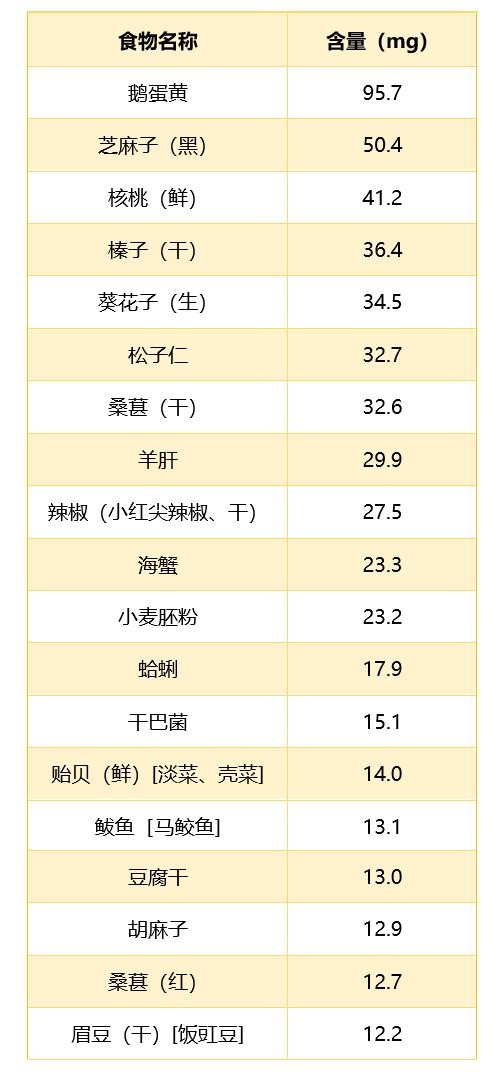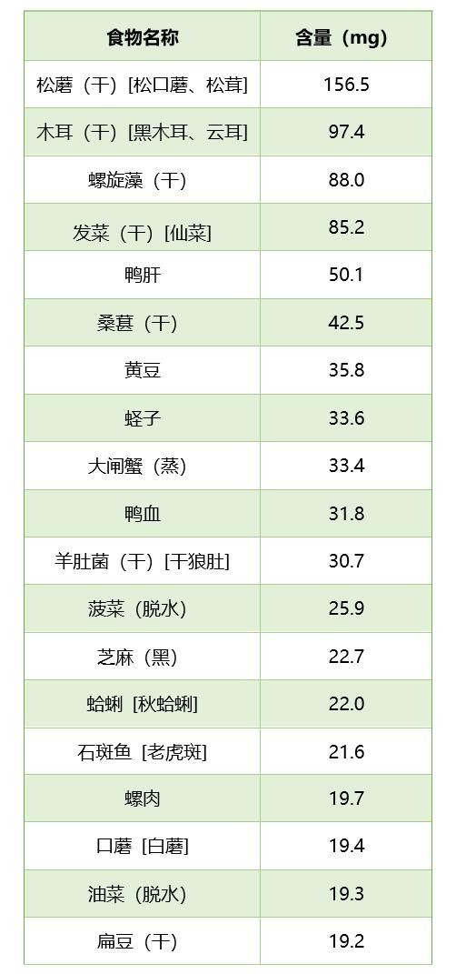 表8 富含铁的常见食物排行榜