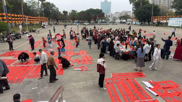 2月6日,学校联合化州市教育局、化州市书画院,在化州市康景体育馆南门广场成功举办“美育满橘州 万福迎新春”文化惠民活动。活动旨在深入落实“百千万工程”部署,深化校地协同,以艺术赋能乡村振兴。