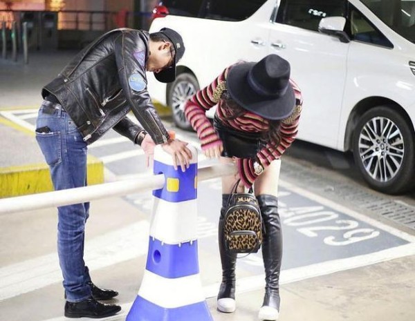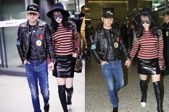 走出机场的明星夫妇邹市明