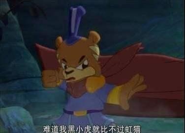 说完了沸羊羊,我们再来说说国产动漫中的另一位知名舔狗,《虹猫蓝兔七侠传》中的黑小虎。从自身的条件来说,黑小虎可以说远胜于沸羊羊,他不但是黑二代而且颜值高,天赋强,堪称是人中龙凤。