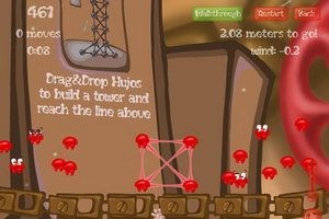 游戏介绍:粘粘世界的flash版本,很多地底精灵一直沉睡在黑暗的地下。一次偶然的机会,洞顶塌了,露出一个明亮的洞口。小精灵们很渴望能钻出洞去看看洞外的世界,但是他们爬不上那么高的洞口。于是他们想到了一个垒高塔的办法,就是大家一起用丝粘在一起,一层层叠高,直到到达洞口。每一关都有一条高度线,玩家只要垒到超过这个高度,就会取得胜利。 [1].