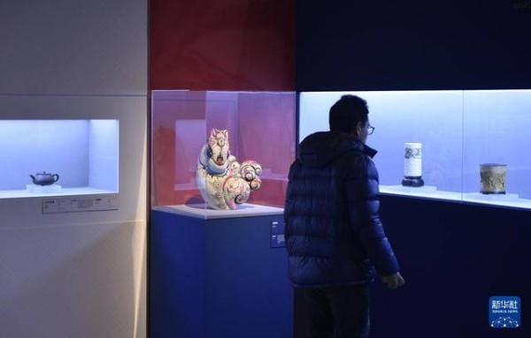 2月9日,嘉宾在中国美术馆参观展出的陶瓷作品。新华社记者 鲁鹏 摄