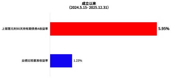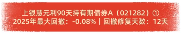 注:上银慧元利90天持有期债券A业绩数据、同期业绩比较基准来源于基金定期报告,数据区间:2024.05.15-2025.12.31。回撤数据统计区间为2025.1.1-2025.12.31,数据来源于Wind。