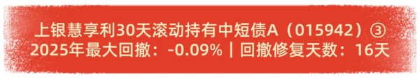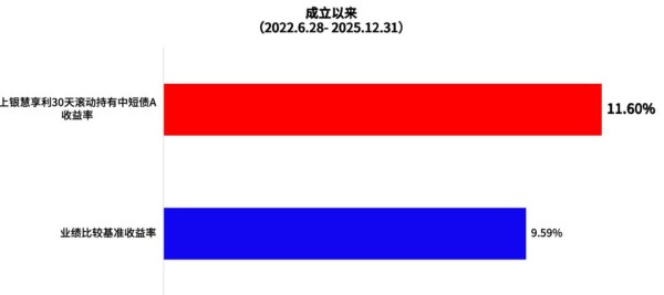 注:上银慧享利30天滚动持有中短债A业绩数据、同期业绩比较基准来源于基金定期报告,数据区间:2022.06.28-2025.12.31。回撤数据统计区间为2025.1.1-2025.12.31,数据来源于Wind。同类基金:债券型-主动债券开放型-短债债券型。