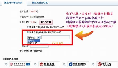 2、若玩家选择使用光宇go购余额则需验证玩家绑定的主乾坤锁动态码或认证手机收到的短信验证码(使用余额支付需主乾坤锁绑定≥7天或手机认证≥30天)