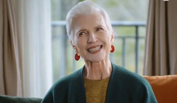 最近,金典新春广告里出现了一张特别的面孔。镜头前,梅耶·马斯克一头银发,妆容精致,墨绿色毛呢套装衬着一对红色耳环,时尚感拉满,完全看不出她已经年近78岁。