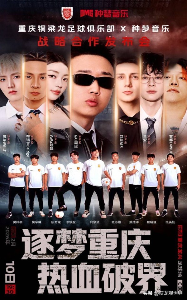 目光南移,山城重庆也传来令人振奋的消息。中超升班马重庆铜梁龙队别出心裁,与国内知名音乐公司种梦音乐(D.M.G)达成战略合作。2月10日晚,双方在重庆龙兴足球场举行了盛大的战略合作发布会,共同宣告这场跨界合作的开启。种梦音乐作为中国说唱音乐的领军者,旗下汇聚了GAI周延、VaVa娃娃、艾热AIR等众多实力派音乐人。此次合作,无疑将为重庆铜梁龙注入全新的活力与潮流元素。消息一出,立刻引爆网络,重庆铜梁龙瞬间圈粉无数,球迷们纷纷调侃道:“你们知道的,我是重庆铜梁龙的球迷!”“2026年最具魅力的球队是重庆铜梁龙!”可以预见,在未来的日子里,重庆铜梁龙将不仅在球场上奋勇拼搏,更将在文化领域大放异彩,成为一支充满个性和魅力的球队。