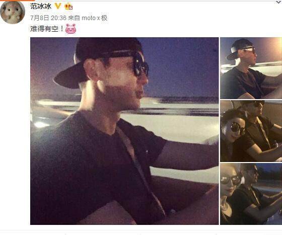 李晨晚上开车带范冰冰兜风