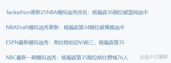 目前杨瀚森在最权威的几个媒体中,预测顺位就是34-36之间,再保守一点杨瀚森可能要跌到40左右,这样的顺位顺位实际上有些尴尬。