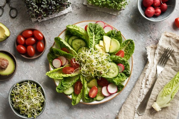 蔬菜水果沙拉:将各种色彩丰富的蔬菜水果混合在一起,加入低脂沙拉酱,既美味又健康。