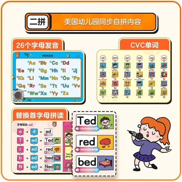 即点即读:这本自然拼读发声书采用专业外教录音,点哪里读哪里,发音绝对标准。