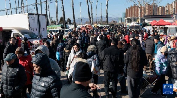 这是2月8日拍摄的北京市昌平区沙河大集。