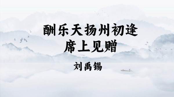 刘禹锡从小爱下围棋,与专教唐德宗太子下棋的棋待诏王叔文很要好。太子当上皇帝后,他的教师王叔文组阁执政,就提拔棋友刘禹锡当监察御史。后来王叔文集团政治改革失败后,刘禹锡被贬到外地做官。宝历二年他应召回京,冬天途经扬州,与同样被贬的白居易相遇。白居易在筵席上写了一首诗《醉赠刘二十八使君》相赠:“为我引杯添酒饮,与君把箸击盘歌。诗称国手徒为尔,命压人头不奈何。举眼风光长寂寞,满朝官职独蹉跎。亦知合被才名折,二十三年折太多。”在诗中,白居易对刘禹锡被贬谪的遭遇,表示了同情和不平。于是刘禹锡写了这首《酬乐天扬州初逢席上见赠》回赠白居易。 [2-3]