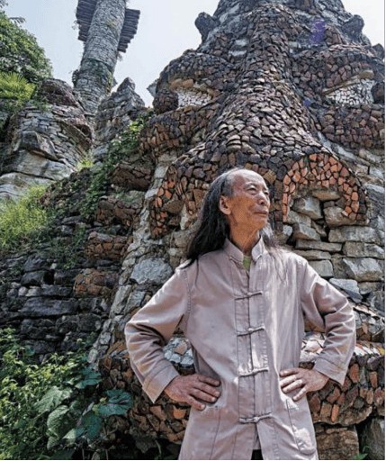 宋培伦,1940年生于贵州省湄潭县,长期致力于贵州民族民间文化的保护、传承与艺术转化。自1997年起,他在贵阳花溪区以本地石材、废旧材料为媒介,持续创作大型生态艺术景观《夜郎谷》。近三十年来,这件作品已从个人艺术理想,成长为一件与自然环境深度互动、根植乡土文化的公共艺术作品,成为贵州重要的文化地标与旅游名片,吸引了大量海内外观众。