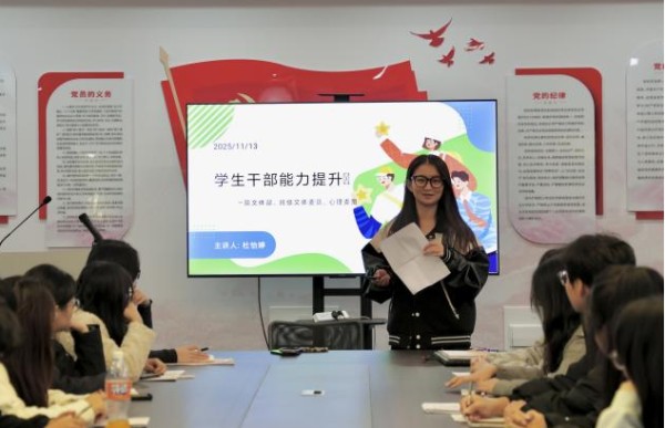 会上,杜怡婷老师以生动案例剖析了文体活动策划、班级生活服务、团队协作沟通等核心工作的关键点,强调文体活动在校园文化生活中的重要性,以及如何策划落实高品质文体活动谈自己的见解,强调学生干部要立足“服务同学、助力学院”的初心,既要明确自身“桥梁纽带”的职责定位,也要锤炼“想干事、能干事、干成事”的过硬本领。