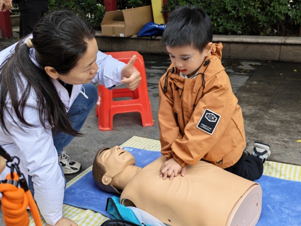首场活动“五‘福’临门·健康嘉年华”在社区小广场拉开序幕。活动巧妙结合“五健”知识与新春“纳福”习俗,设置体重管理、视力保护、心理健康、骨骼健康及口腔健康五个打卡点。普瑞眼科、六朝松春华口腔等六家爱心单位通过趣味游戏与互动体验等方式,引导亲子家庭在集章闯关中学习健康知识。孩子们在家长陪伴下,体验护眼挑战、刷牙能手等环节,并参与应急技能实操,在欢乐中悄然树立安全意识。