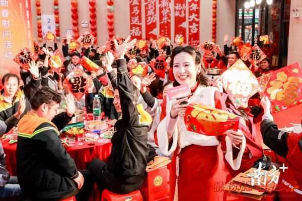 除了主会场的千人团聚,今年的职工春晚还首次设立新就业形态劳动者分会场,邀请快递员、货车司机等150名代表齐聚,共品大盆菜,共享团圆暖。每位分会场代表都收到了一份特别准备的“新春暖心礼包”,内含实用年货、保暖围脖和手套等,让在寒风中奔波的劳动者从手到心都暖起来,实现“职工在哪里,温暖就送到哪里”。