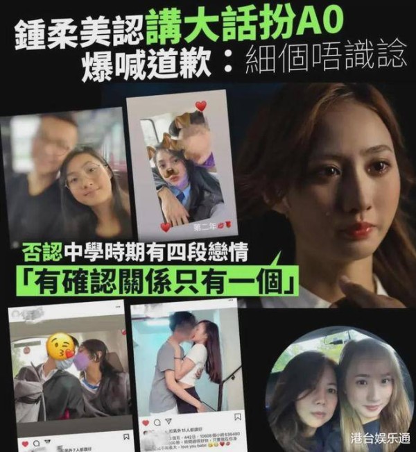 19岁的TVB新星钟柔美,近日接受香港知名娱乐媒体《明周娱乐》的专访,坦言自己曾经自称是一个没有恋爱经历的A0(即纯洁未涉情感世界)是一个谎言,并对公众表示了歉意。她特别澄清,虽然在中学时确实有过一次恋爱经历,但外界所传的中学时至少谈过四次恋爱完全不实,那些男同学与她只是普通朋友。对于先前曝光的她与男艺人刘展霆之间亲密互动的画面,她也承认双方关系发生了变化,正在进一步了解彼此。