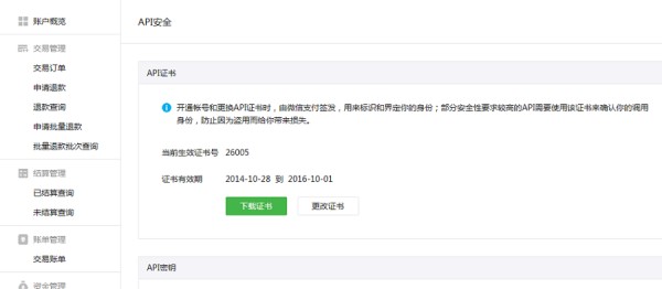 商户调用微信红包接口时,服务器会进行证书验证,请在商户平台下载证书