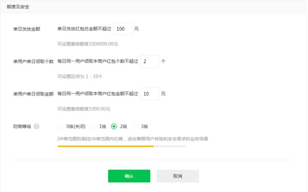 ◆ 单日发送金额上限:该商户一天允许发放的红包总金额上限;