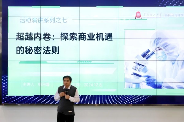 2024年12月3日,由广州华商学院就业创业e站主办,广州华商学院学生就业创业处、广州华商学院创新创业学院、华商众创孵化基地承办,大学生创业协会协办的“超越内卷:探索商业机遇的秘密法则”主题讲座在广州校区励志楼 C408(主会场)和肇庆校区6号楼201(分会场)同步举行。