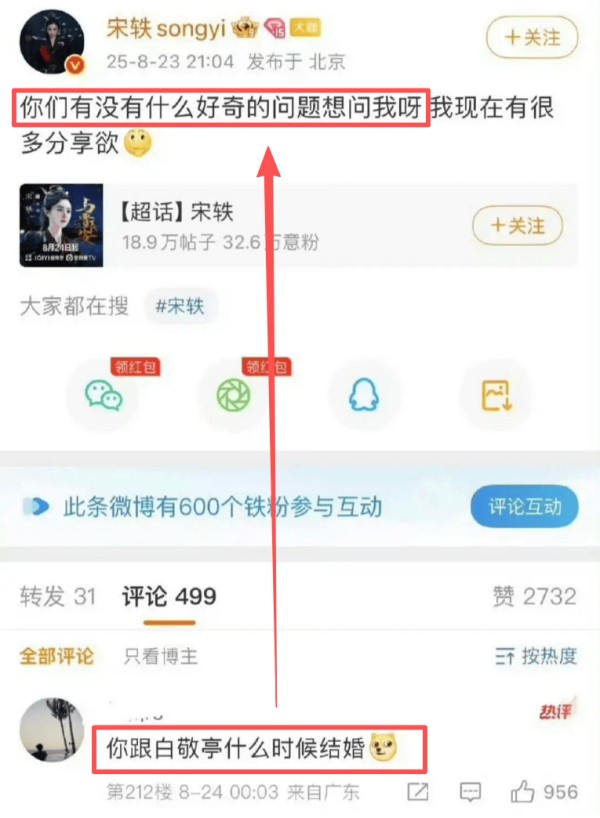 宋轶被问跟白敬亭什么时候结婚,删博拒答,疑似已经分手了,粉丝开骂:别来沾边!