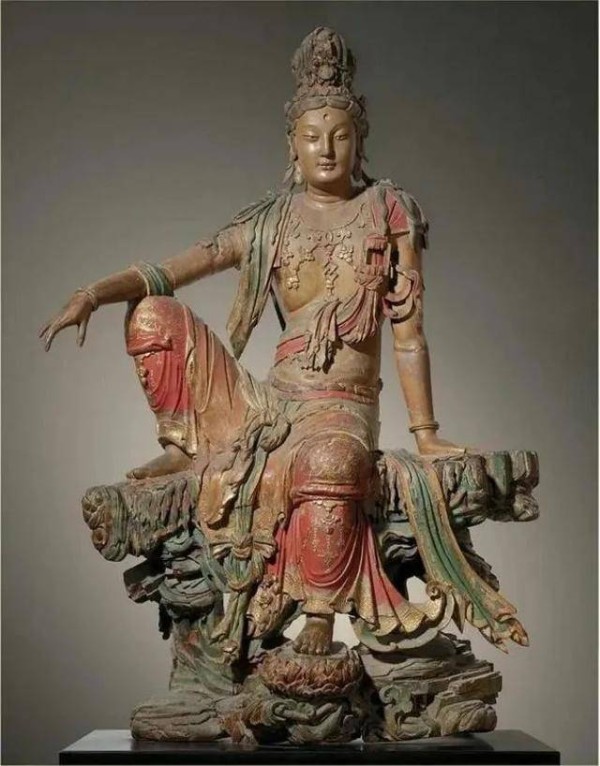 辽代木雕彩绘水月观音像,藏于纳尔逊-阿特金斯艺术博物馆。