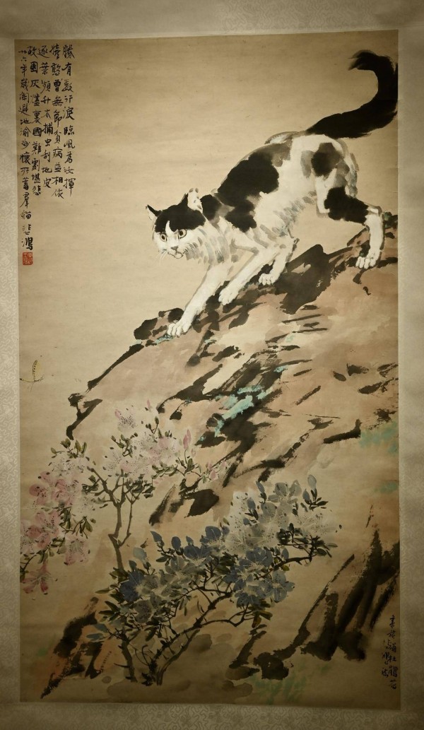 马年徐悲鸿艺术特展正在展出的《故园之猫》,摄影 雷远东
