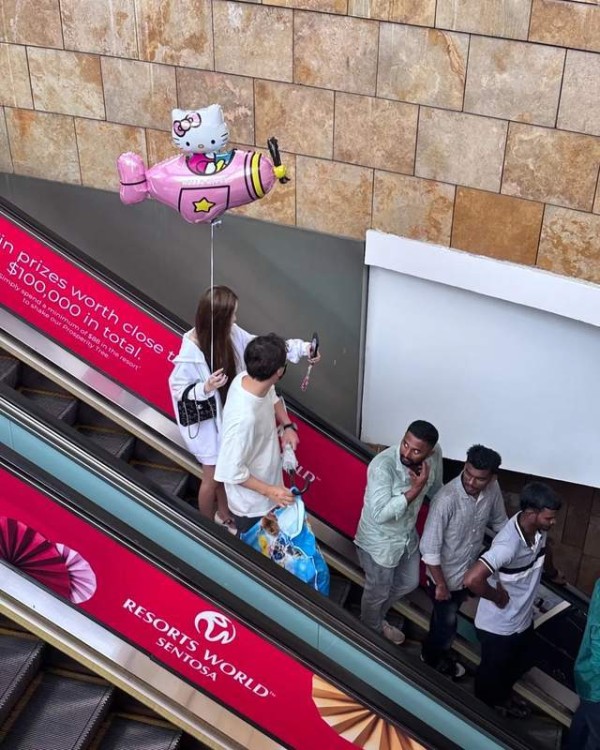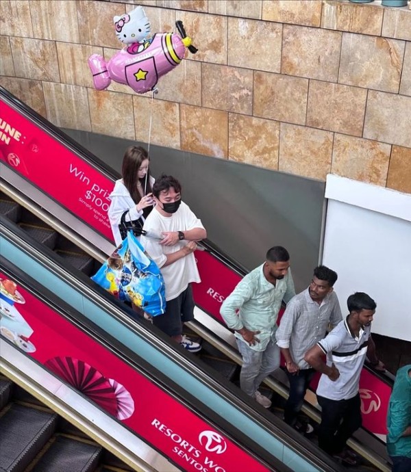 王思聪带女友新加坡过年,两人坐电梯拍合影,前方外国人表情亮了