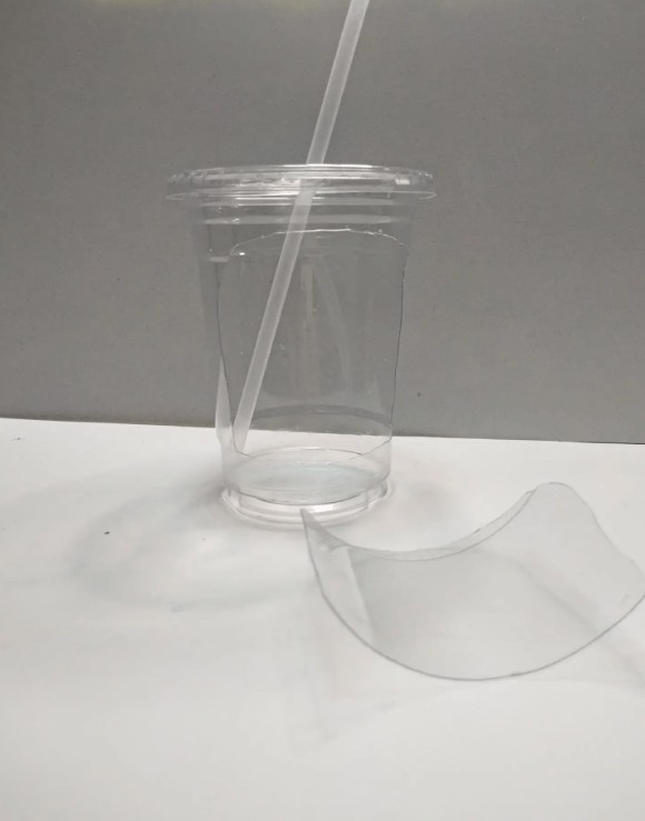 Step 4.将图案贴在奶茶杯上。