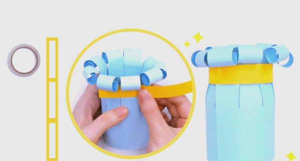 现在,让我们开始探索如何制作一个别致的花瓶吧!制作花瓶时,首先用长方形彩纸剪出条状并卷曲,使用双面胶粘合,再以彩色小纸条装饰瓶口增添色彩。