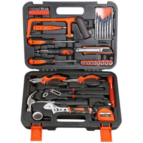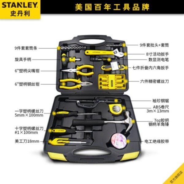 史丹利的家庭工具套装既有常规维修工具,也有电气和精密工具,收纳在方便携带与存放的工具箱里。爆款45件套MC-045-23,内含钢卷尺、螺丝刀、扳手、羊角锤、绝缘胶带、测电笔和精密螺丝批组套等,能轻松胜任一般家用维修工作。