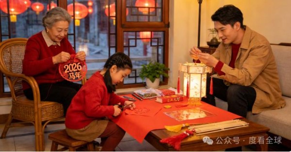 腊月的风裹着渐浓的年味掠过街巷,与往年庙会喧嚣、走亲串户的热闹不同,如今不少家庭的窗前灯下,多了几分指尖摩挲的静谧暖意。红纸在手中翻折裁剪,纸屑簌簌落下,转眼化作马年生肖窗花;竹制骨架经耐心拼接,糊上绘有祥云纹样的宣纸,一盏古风宫灯便有了雏形。从剪纸、灯笼DIY到木版年画填色、中国结编织,这些曾藏于非遗展馆、见于匠人指尖的老手艺,正以居家手作的形式走进寻常百姓家,悄然迭代为年轻人追捧的新年俗,在传统与现代的碰撞中,勾勒出不一样的新春模样。