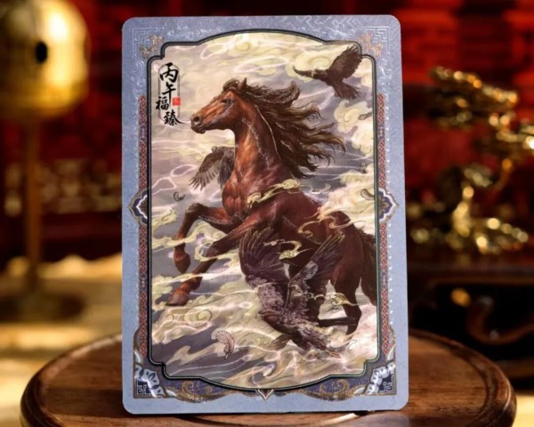 “‘骐骥驰骋典藏卡’以骐骥驰骋为核心创意,深度融合春晚文化与生肖美学。设计团队从昭陵六骏、敦煌壁画、秦汉文物中提取神韵,将唐宋诗词与传统祥瑞纹样融入方寸之间,反复打磨线条、色彩与构图,让千年文脉以潮流卡牌形式新生,传递出团圆、奋进、吉祥的新春祝福。”卡游公司相关负责人说。