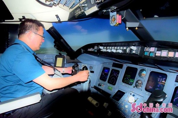 在飞行培训中心,飞行教员结合飞行培训内容就飞行员是怎样练成的进行了细致讲解,并邀请部分媒体记者体验飞行模拟机。据悉,飞行培训中心内的飞行模拟机1:1还原机舱内实景,仪表、设备、材质都和真正的客机一模一样,包括起飞、降落失重感和气流颠簸等都能精准模拟,让学员们体会到100%实际操作感受。目前山航有四台模拟机,每台单价均超过千万人民币。