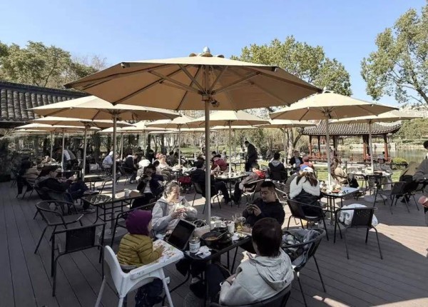 “春节就不人挤人出去了,而且带着狗狗出游也不太方便,就在上海跑一跑,也是不错的体验,这几天天气好,更适合带自家毛孩子出来逛逛。”年初四记者在一尺花园户外就餐区看到,不少市民带着心爱的萌宠前来。当天温度攀升至近20℃,宁愿等位在户外就餐的市民络绎不绝。