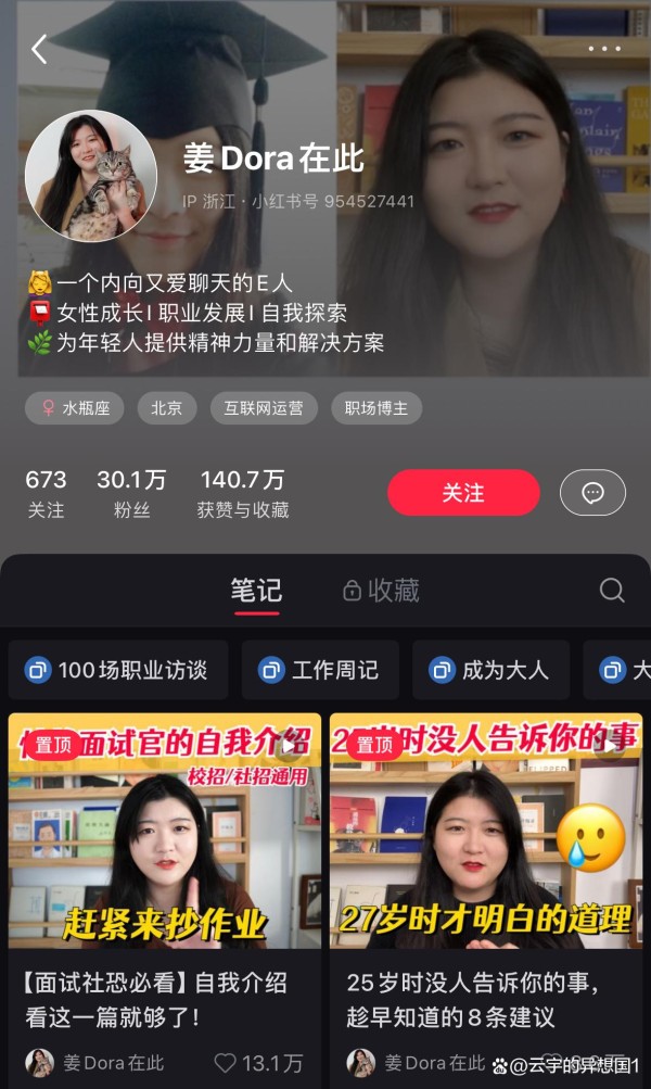 比如职场干货博主“姜Dora在此”,她的主页一眼望去全是干货,且标题直击痛点: