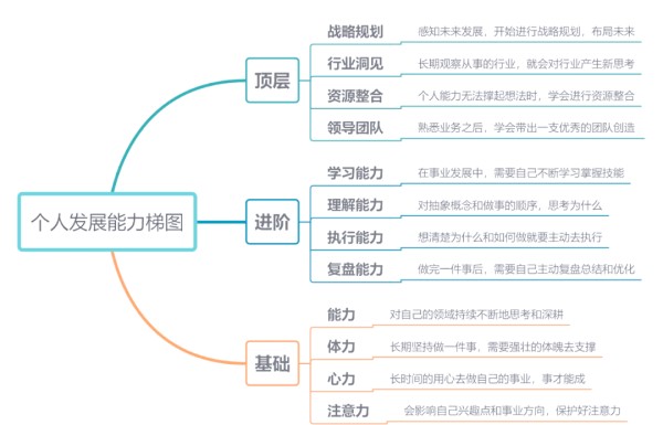梯图的基础层包含四个关键要素:能力、体力、心力和注意力。