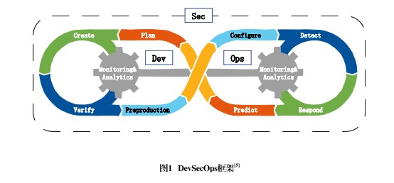 容器的生存时间(Time To Live,TTL)对安全技术有显著的影响。据统计,46%的容器生存时间小于1小时,11%的容器小于1分钟,对容器的攻击和防护有可能跟不上容器自身的变化。因此,对于攻击者而言,在其攻击链条中会倾向于寻找更持久化的资源,如代码、第三方库、镜像、仓库、编排系统、控制面、宿主机等;而对于安全防护而言,将实时杀毒、入侵检测等防护工具安装在轻量级的容器当中变得不可行,需转变思路将安全控制向开发侧转移,在DevOps中加入更多安全控制,包括开发/测试/验证安全、软件供应链安全、镜像仓库安全、监控与分析以及配置和暴露面的核查。例如,使用代码检查工具进行代码静态分析、使用镜像漏洞扫描工具对镜像仓库进行扫描、核查用户凭证、密钥配置等。开发及安全运维一体化(DevSecOps)框架如图1所示。