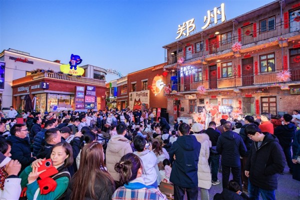 玫瑰商店巡游、山海八骏福运迎春、BODULOOK街拍等互动活动令人目不暇接。“城、街、巷、院、景”相融中,巨幅“春”字跃然眼前,一整面福字墙直接将年味拉满,以中原传统建筑为原型的15座院落中,兰巴赫、华人青年等众多华中首店、本地旗舰品牌店中人头攒动,彰显新春假期旺盛消费力。