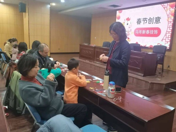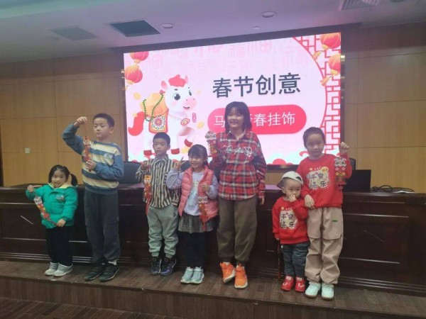 在“春节对联连连看”环节,孩子们开动脑筋,在游戏中感受楹联文化的独特魅力。最后的DIY手作环节备受欢迎,在家长的帮助下,孩子们打开“马年新春挂饰”材料包,认真拼接、粘贴,制作出属于自己的新春挂饰。红彤彤的材料、栩栩如生的小马造型,承载着孩子们对新一年的美好祝愿。