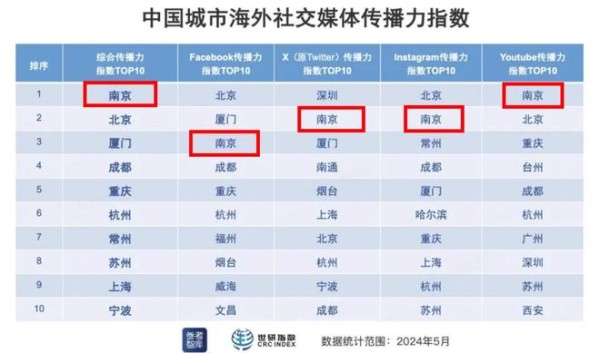 03 外溢还有一个原因和南京整体对于外界的吸引力提升也有很大关系,在中国城市海外社交媒体传播力指数TOP10中,南京的成绩非常亮眼。国际上都能有如此大的传播力,更何况国内。