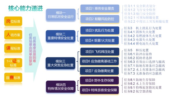 学习这门核心课程,同学们可以掌握乘务岗位规范和安全规则、应急处置标准程序,学习如何处理客舱安全特情,能处置突发应急事件,并具备民航工匠精神和乘务安全素养。