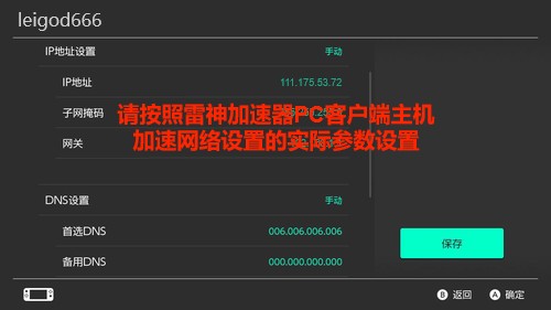 4、将IP地址、子网掩码、网关和DNS改为上面雷神加速器提供的配置,注意,如果不够三位,前面需要补0,如下所示