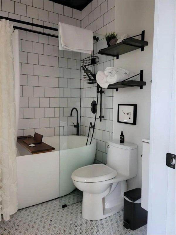 6、厕所一定要做好干湿分离,尽量用大一些的砖头,那样缝隙就小一些,绝对不要做白色美缝。长方形的地漏,除了好看之外,并没有其他的优点。