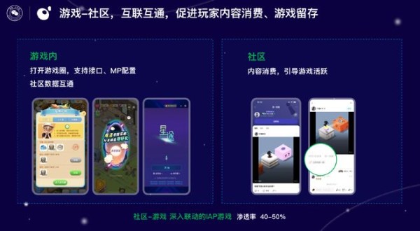 平台工具,会有不同的样式,在保证用户游戏体验的基础上,让开发者的内容高效的被用户发现。与此同时,用户授权后,用户在社区的数据可以实现游戏互通。意味着开发者,可以在游戏内创造出不同类型的社区任务玩法,丰富游戏内容本身。