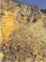 由生物化学作用生成的灰岩,常含有丰富的有机物残骸。石灰岩中一般都含有一些白云石和黏土矿物,当黏土矿物含量达25%~50%时,称为泥质岩。白云石含量达25%~50%时,称为白云质灰岩。石灰岩分布相当广泛,岩性均一,易于开采加工,是一种用途很广的建筑材料。
