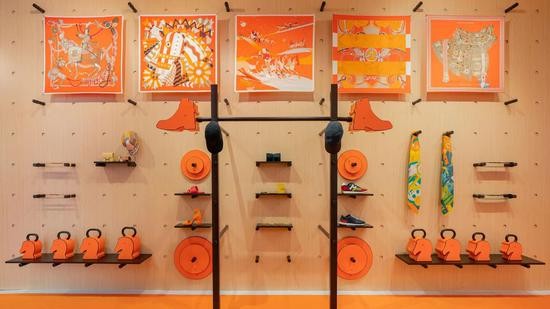 HermèsFit在成都打造了一个引人入胜的互动空间,邀请宾客前来探索无限精彩。在量身打造的别样空间内,标志性的爱马仕橙色点缀四周,墙上饰有精美图案,营造出乐趣十足、绮丽动感的氛围。宾客可以在一个以多元素和想象力构建而成的教室里体验健身课程,亦可看到一面挂满爱马仕定制杠铃和壶铃的器械墙以及作为拍照区域的拳击台和攀岩墙、果汁吧等。它们都为趣味运动提供了别样的解读方式,通过新意视角巧妙糅合爱马仕卓越手工艺和别出心裁的自定义风格。