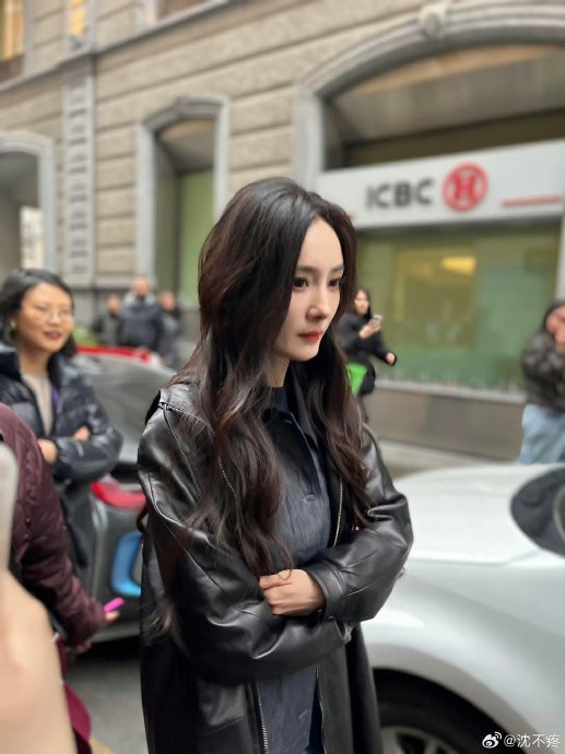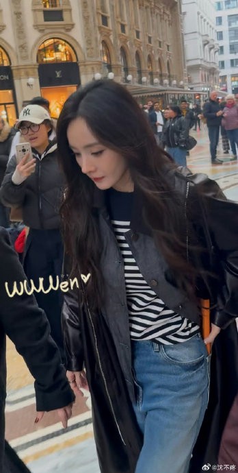 杨幂米兰探店路透,好小的脸好清晰的美貌