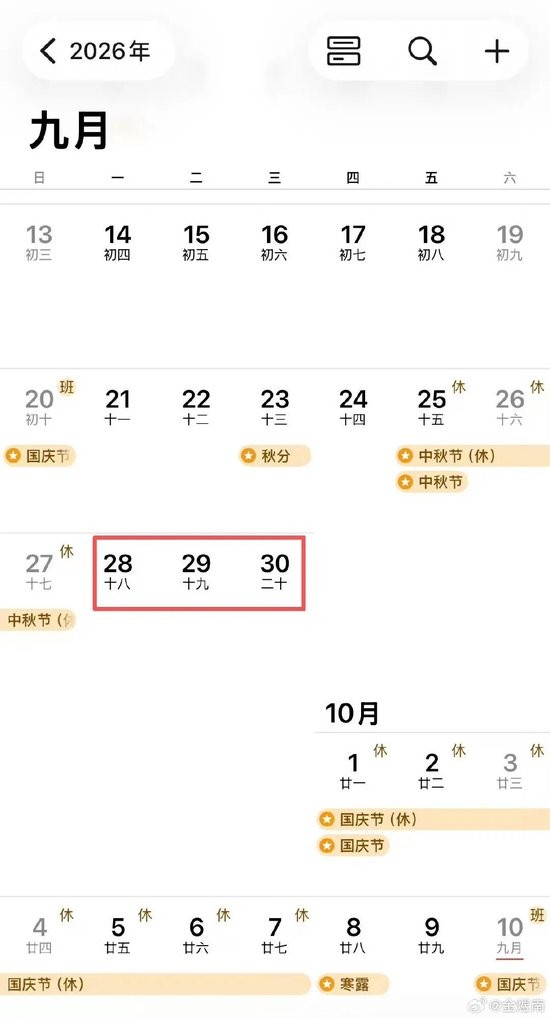 这一安排让不少打工人眼前一亮,纷纷开启 “拼假模式”。最受关注的方案是:在9月28日、29 日、30日这三天请假,即可将假期从9月25日一直延续到10月7日,足足13天的超长假期,无论是返乡团圆还是错峰出游,都绰绰有余,因此被网友们戏称 “堪比春节”。